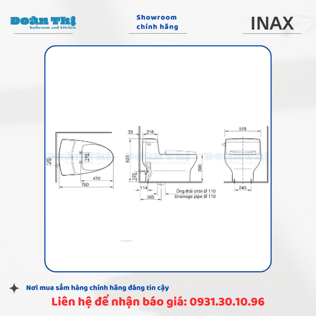 • Tâm thoát: 300 mm (±5 mm)