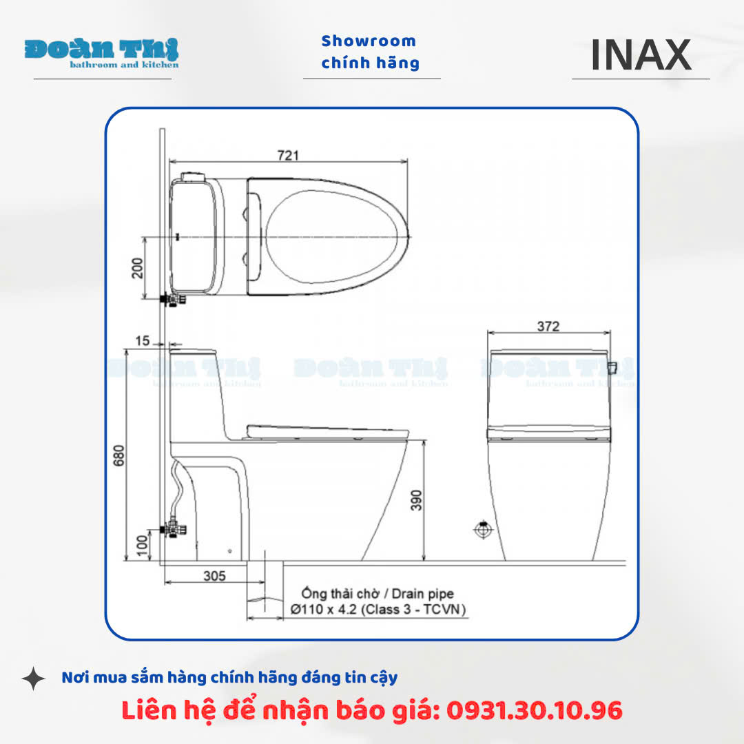 Kích thước vừa phải & đa năng | Dài 721 mm / rộng 372 mm — phù hợp nhiều kiểu phòng tắm; kết hợp với nhiều loại nắp (rửa cơ, điện tử) nếu muốn nâng cấp. |