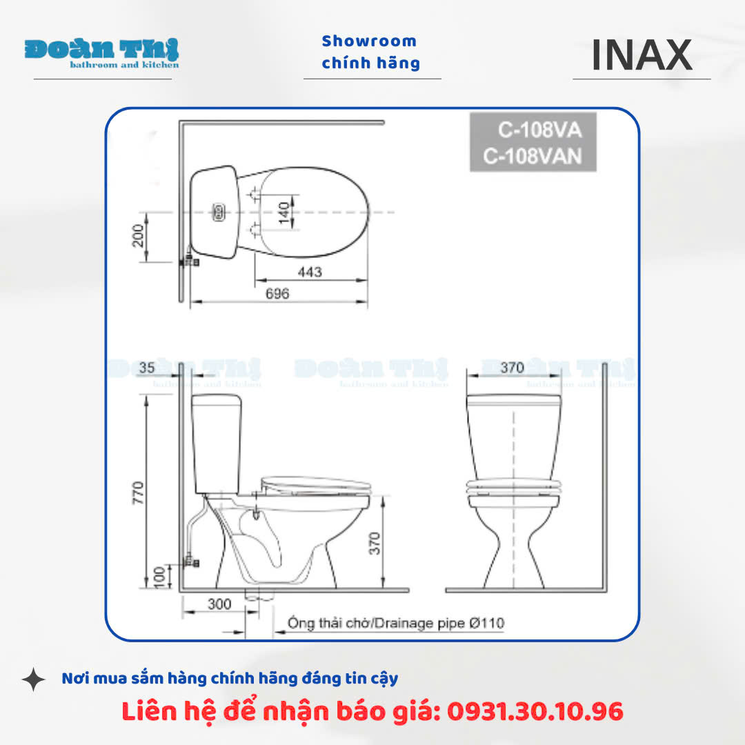 Thông Tin Bàn Cầu 2 Khối INAX C-108VA: